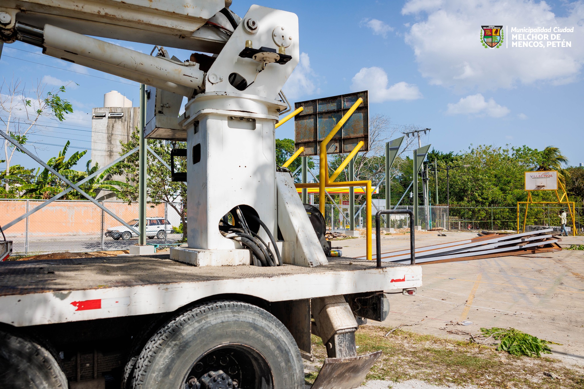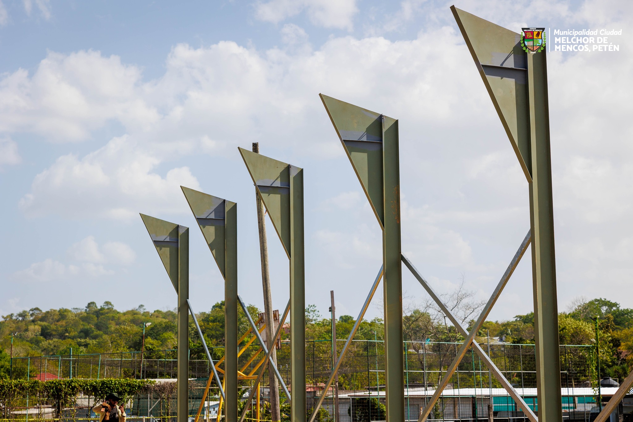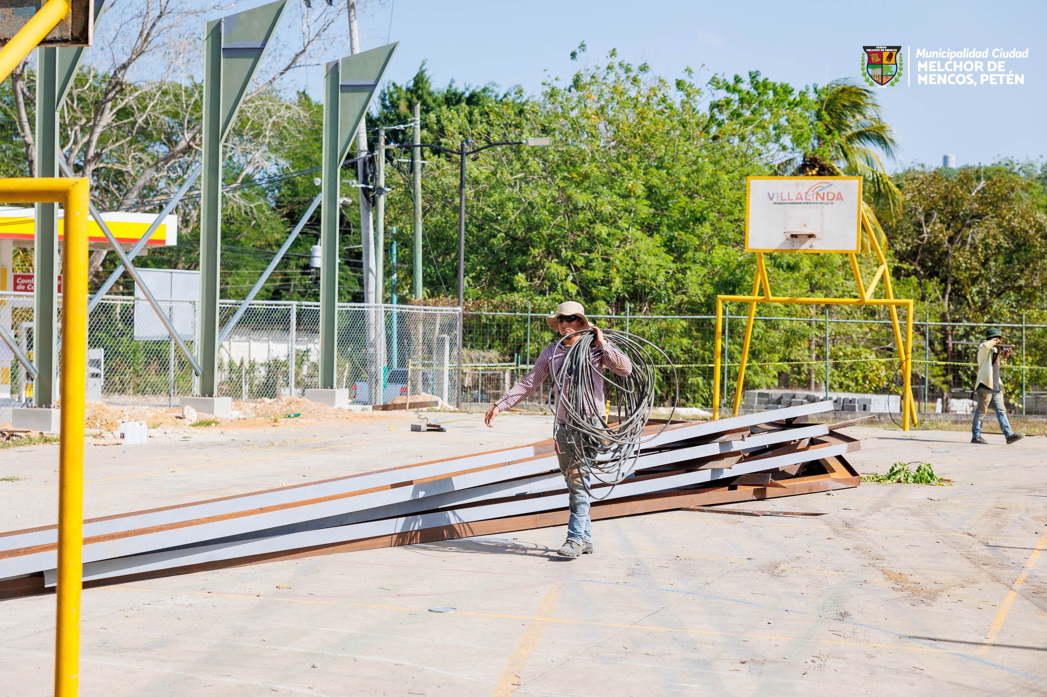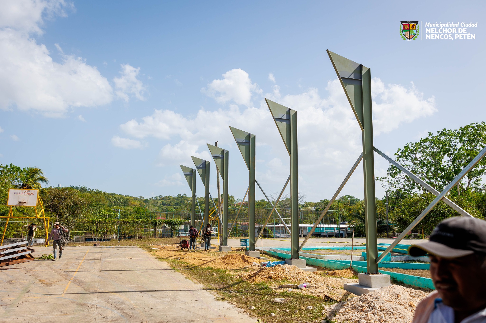 Avances de construcción del techo en la cancha polideportiva de Barrio El Campito